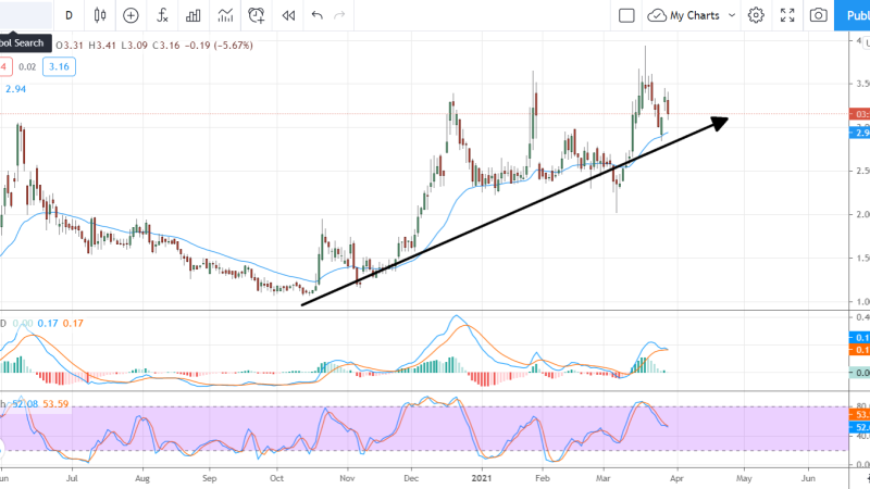 Drive Shack (NYSE: DS) operates multiple golf venues and destinations in the Carolinas and southeast making it a high-value property in COVID-related times. The pandemic sparked a 14% increase in the number of rounds played last year and we think those numbers will stick and so do the analysts. The analysts at Craig-Hallum Capital initiated this $3 stock with a buy rating and a $5 price target citing momentum in both business segments. Shares of the stock are moving down in the wake of the release but the trend is up making this a potential buying opportunity.