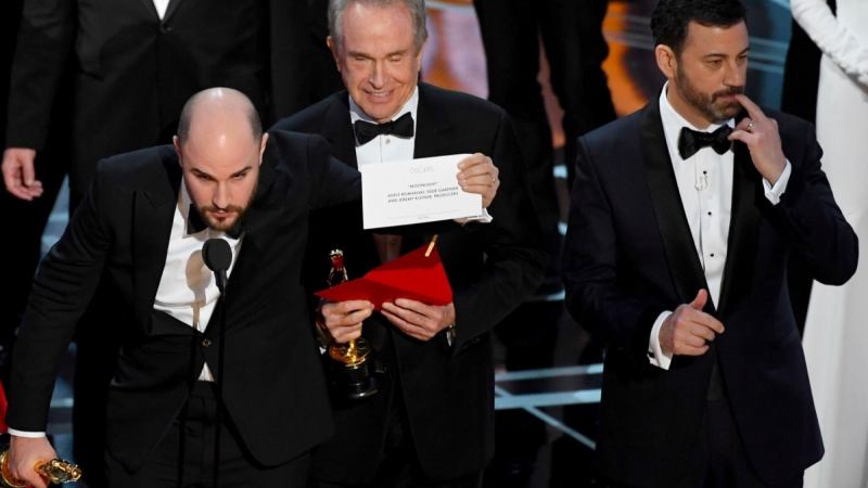 By now, you have surely seen the Oscar night Best Picture mess up witnessed live by over 32 million people. To quickly recap, presenters Warren Beatty and Faye Dunaway anointed La La Land winner, and then a few seconds later, a guy wearing headphones ran out on stage, yoinked the statues out of everyone’s hands mid-acceptance speech and gave them to the rightful winners, the producers of Moonlight. Whoops!