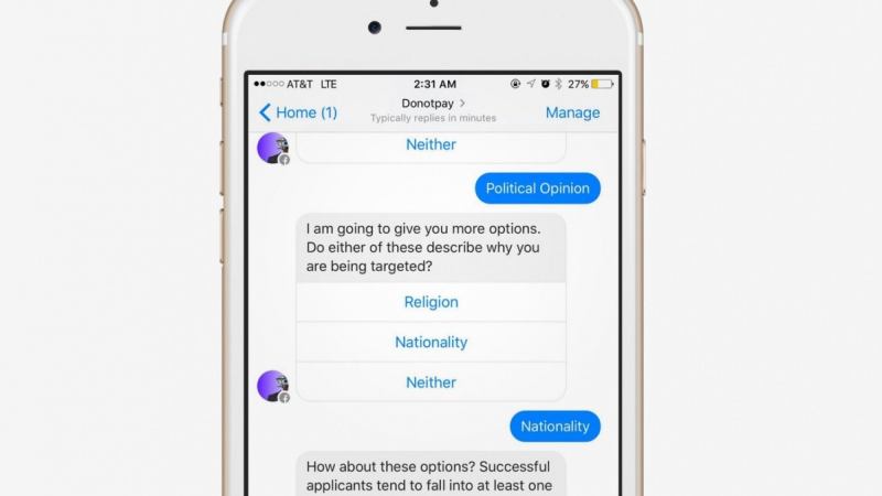Joshua Browder’s chat bot lawyer, DoNotPay, is clearly multi-talented — after getting people out of parking fines, it’s now helping refugees find a home in a new country. Browder has adapted the AI to offer aid to asylum seekers in the U.S. and Canada, and asylum support in the U.K. The Facebook Messenger bot turns the asylum application process into a series of simple questions. Once you’ve finished, you’ll have a filled form ready to go. Refugees in the U.K. still have to apply in person, but those in the U.S. and Canada are largely set once they’ve finished the conversation.