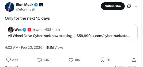 Tesla Slashed the Cybertruck Price to $59,990—But Musk Says You Only Have 10 Days to Buy It