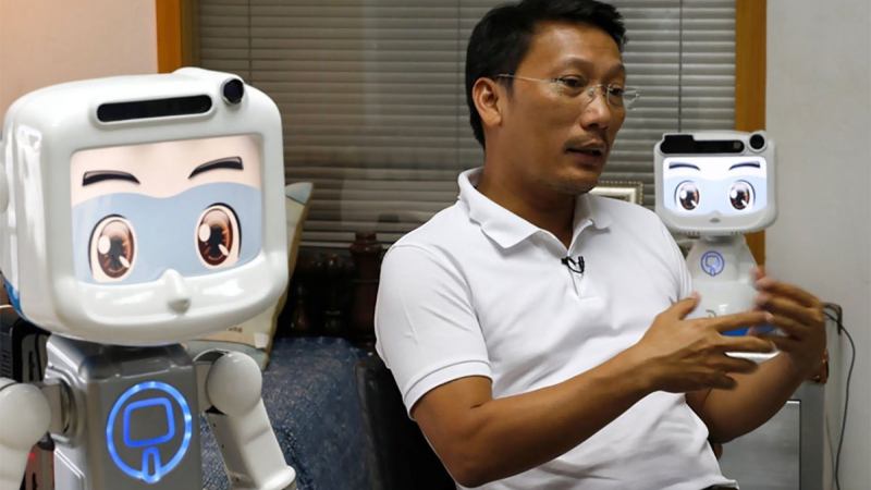 Thai elderly care robot Dinsow can not only keep track of your medication and video-phone your relatives, but can also exercise with you and even entertain you with its karaoke skills.