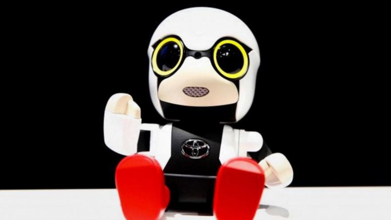 Toyota Motor Corp. on Monday unveiled a doe-eyed palm-sized robot, dubbed Kirobo Mini, designed as a synthetic baby companion in Japan, where plummeting birth rates have left many women childless.