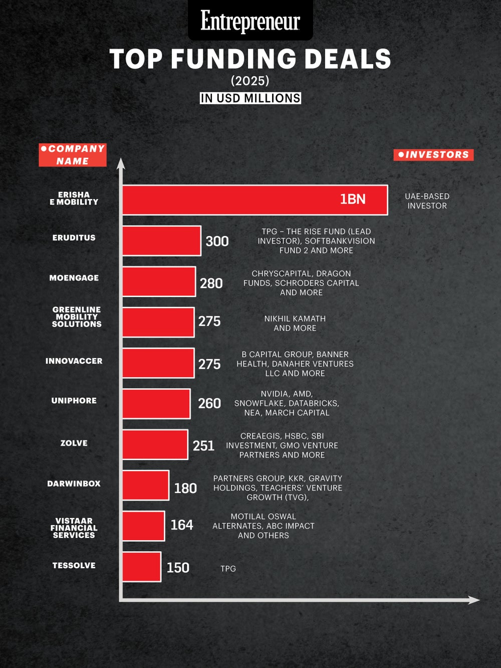 2025 Big Bets in Indian Startups Amid Cautious Funding Climate India's 2025 startup big bets, Erisha E Mobility, Eruditus, MoEngage, GreenLine, Innovaccer, Uniphore, Zolve, Darwinbox, Vistaar, Tessolve, secured major funding, spotlighting mobility, fintech, SaaS, healthtech, and semiconductors.