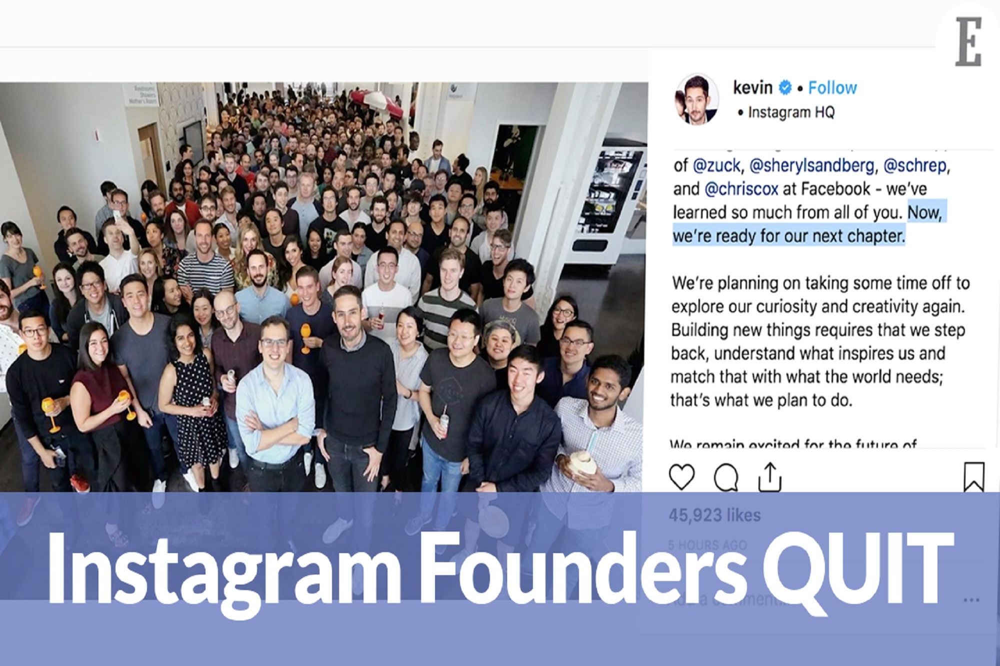 1. Instagram co-founders call it quits. Kevin Systrom and Mike Krieger have resigned from their respective positions to explore their creativity again.