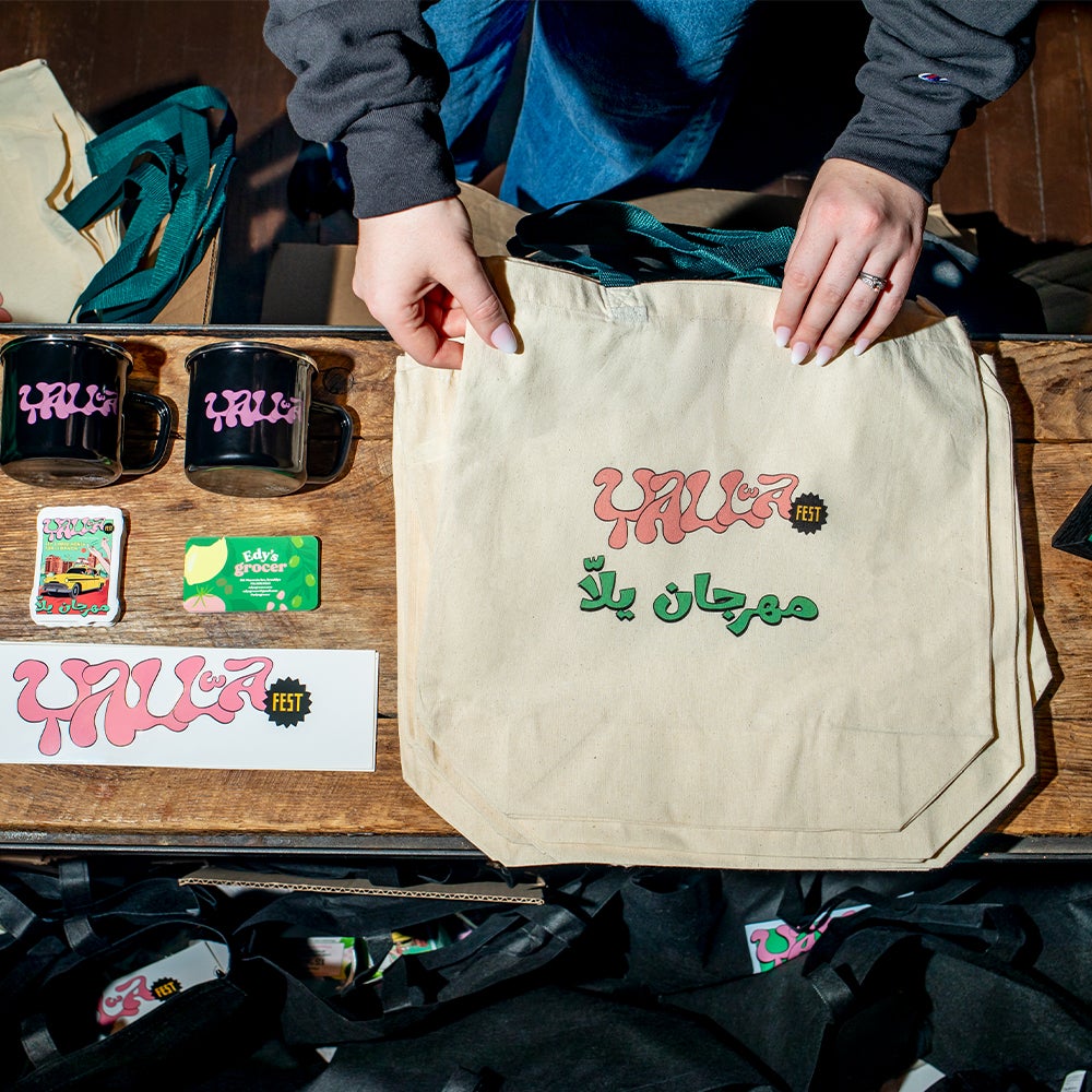 Massih approaches Yalla Fest with that full experience in mind. Visual consistency across banners, printed materials, and booths helped unify dozens of vendors into a single cohesive event. Clear, branded signage made it easy for guests to navigate the space, while branded elements, including custom t-shirts and mugs, reinforced the festival’s identity throughout the venue.