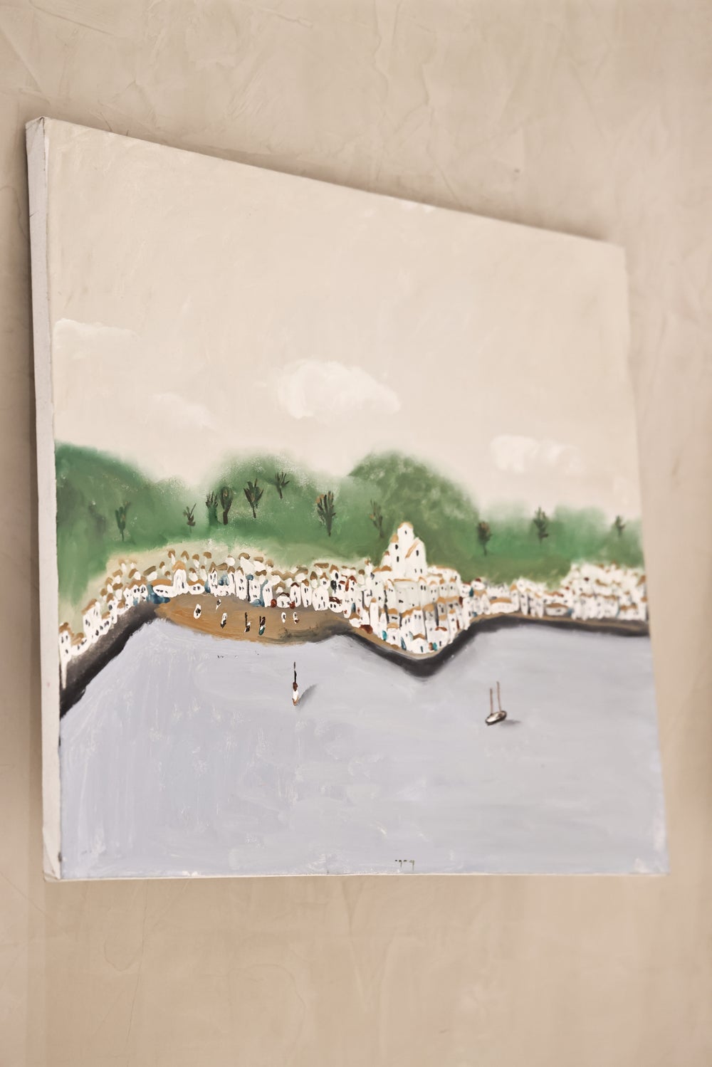 "My paintings and ceramic tiles from different periods are on display at Radisson Blu Iveria. The sea is a recurring theme in my work. You will also see tiles inspired by The Knight in the Panther's Skin, which I illustrated for an upcoming book. I draw inspiration from everyday life, relationships and simple moments. I start painting with colour and follow the mood, often discovering something new along the way. Working with ceramics is especially exciting because the final result is always a surprise. I've grown very attached to clay and enjoy the process deeply. This space suits the works beautifully. The angled walls give a unique feeling, as if the paintings are floating, creating a light and elegant exhibition." – Tutu Kiladze, artist.