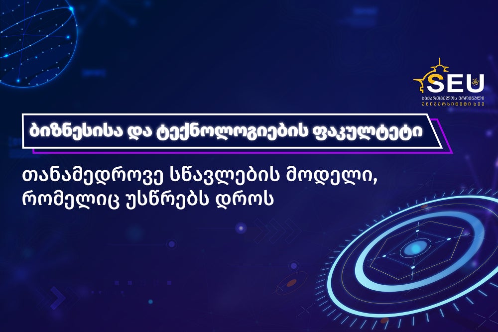 საქართველოს ეროვნული უნივერსიტეტი SEU-ს ბიზნესისა და ტექნოლოგიების ფაკულტეტი წარმოადგენს თანამედროვე საგანმანათლებლო სივრცეს, სადაც აკადემიური ცოდნა, ინოვაციური მიდგომები და პრაქტიკაზე ორიენტირებული სწავლება ერთიანდება. ფაკულტეტის მთავარი მიზანია სტუდენტებისთვის კონკურენტუნარიანი განათლების უზრუნველყოფა, რომელიც პასუხობს როგორც ადგილობრივი, ისე საერთაშორისო შრომის ბაზრის მოთხოვნებს.