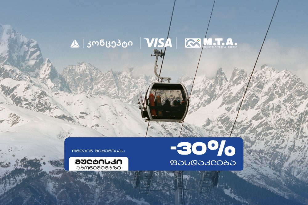 თიბისი კონცეპტის, Visa-ს და M.T.A-ს შეთავაზებების ფარგლებში, 23 დეკემბრიდან სათხილამურო სპორტის მოყვარულები შერჩეულ ონლაინ პლატფორმებზე მულტისკი სეზონური აბონემენტების თიბისი კონცეპტ Visa ბარათებით შეძენისას, 30%-იანი ფასდაკლებით ისარგებლებენ.