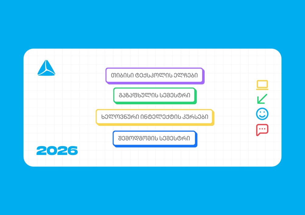 2026 წლის კიდევ ერთი სიახლე ხელოვნური ინტელექტის კურსია, რომელიც უფროსკლასელებს აძლევს შესაძლებლობას, დაეუფლონ მომავლის ერთ-ერთ ყველაზე მოთხოვნად უნარს და AI, იდეის შექმნიდან, მის ტექნიკურ განხორციელებამდე გამოიყენონ. კურსი პრაქტიკულ სწავლებაზეა დაფუძნებული და ვებ მენეჯმენტის, გრაფიკული დიზაინისა თუ AI პროგრამირების მიმართულებით მიღებული ცოდნის საფუძველზე, მოსწავლე კურსს რეალური ციფრული პროდუქტის შექმნით დაასრულებს.