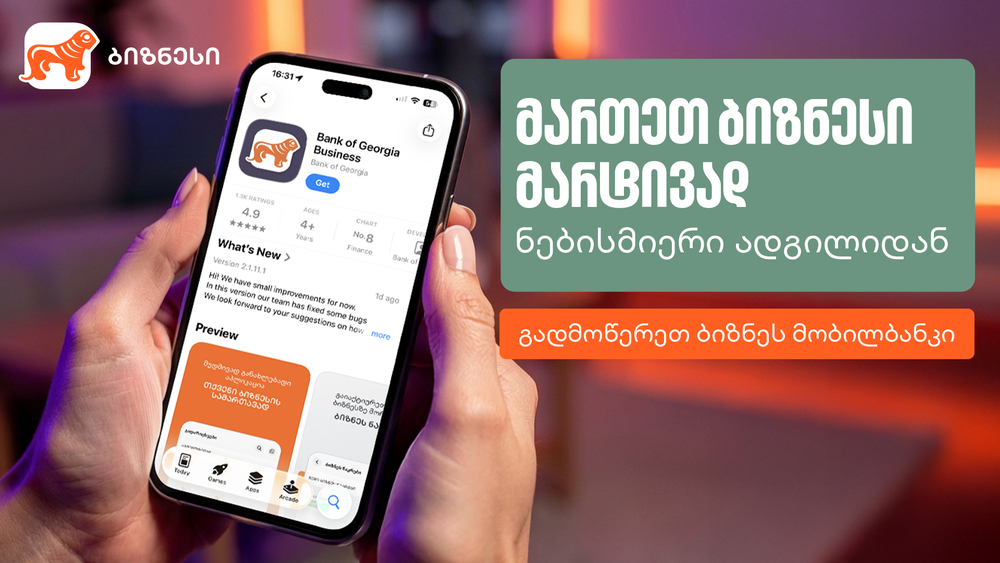 ყოველთვის ახალი ბიზნეს მობილბანკი და ბიზნეს ინტერნეტბანკი - გაეცანით საქართველოს ბანკის სიახლეებს