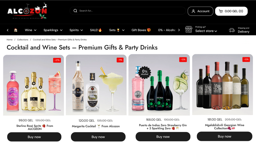 დღეს alcozon.ge წარმოადგენს სანდო ონლაინსივრცეს სწრაფი მიწოდებით, რომელიც ამ ეტაპზე ოპერირებს მხოლოდ თბილისში და არის 500+ საერთაშორისო პროდუქტი, პერსონალური რეკომენდაციებით და B2B მომსახურებით.