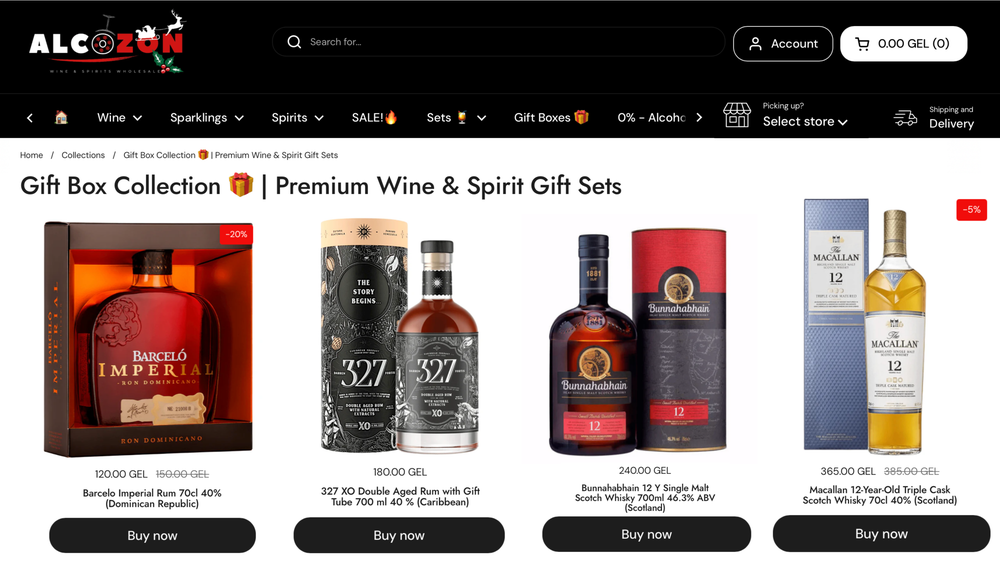 ALCOZON არის ონლაინსივრცე, რომელიც აერთიანებს მსოფლიოს ალკოჰოლურ სასმელებს და მათთან დაკავშირებულ მთლიან ეკოსისტემას: პრემიალურ სპირტიან სასმელებს, ცქრიალებს და ღვინოებს, კოქტეილის ინგრედიენტებს, ბარის აქსესუარებსა და სელექციურ საჩუქრის სეტებს – ყველაფერს, რაც ხარისხიანი სასმლის გამოცდილებას ქმნის.