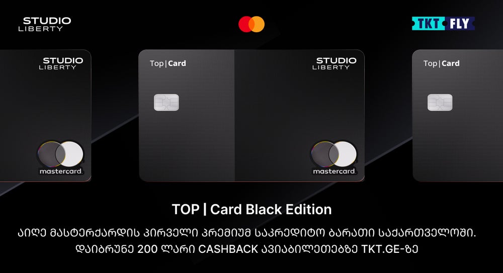 Mastercard და ლიბერთის პერსონალური ბანკინგის მიმართულება, სტუდიო ლიბერთი, მომხმარებელს პრემიუმ საბანკო მომსახურებაში ახალ სტანდარტს სთავაზობენ - Top|Card Black Edition საქართველოში Mastercard-ის პირველი საკრედიტო ბარათია, რომელიც შექმნილია პრემიუმ სერვისებზე ორიენტირებული მომხმარებლებისთვის და აერთიანებს ფინანსურ და სამოგზაურო უპირატესობებს.