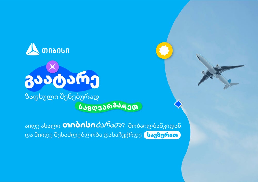 გაატარე ზაფხული შენებურად — დაგეგმე შენი მოგზაურობა ისე, როგორც თავად გსურს. აიღე ბარათი მობაილბანკიდან სულ რაღაც 30 წამში.