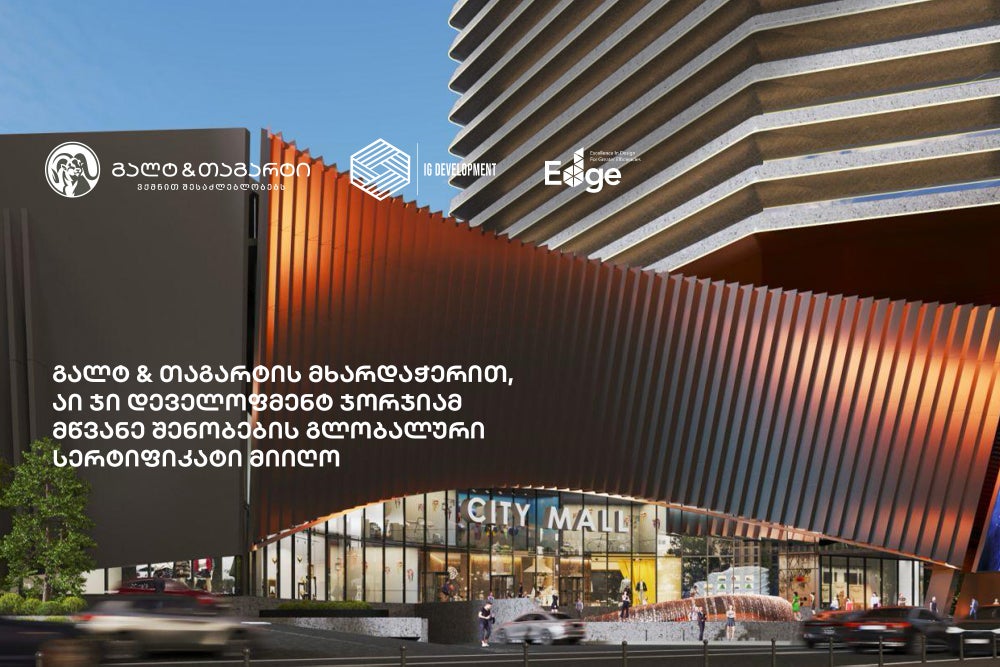 გალტ & თაგარტის მხარდაჭერით, აი ჯი დეველოფმენტ ჯორჯიამ მწვანე შენობების გლობალური EDGE სერტიფიკატი მიიღო