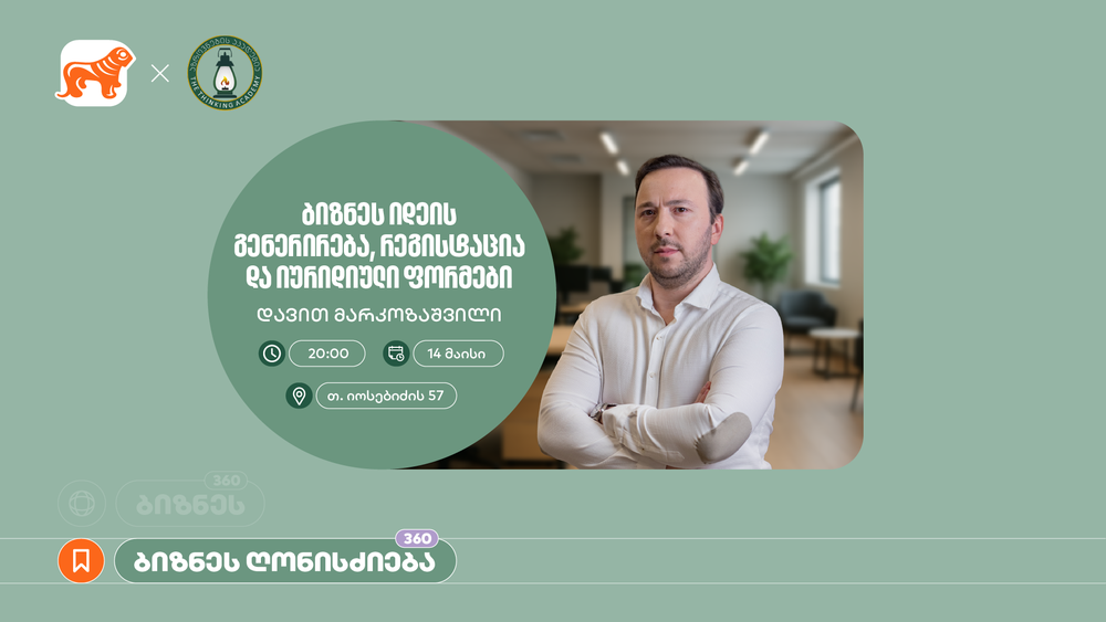 ბიზნეს სესიების პირველი ლექცია 14 მაისს გაიმართება. შეხვედრა მოიცავს ბიზნეს იდეის გენერირებას, რეგისტრაციას და იურიდიული ფორმებს. შეხვედრას ანტერპრენერი და თავისუფალი უნივერსიტეტის პროფესორი, დავით მარკოზაშვილი გაუძღვება.