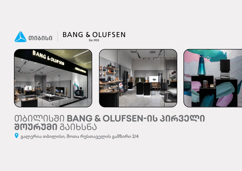 Bang & Olufsen-ის თბილისის შოურუმი სრულად ასახავს ბრენდის გლობალურ კონცეფციას, შესაბამისად, მომხმარებლები ადგილზე მრავალფეროვან პროდუქტებთან ერთად ინდივიდუალური კონსულტაციითა და კონსიერჟ-სერვისით სარგებლობასაც შეძლებენ.