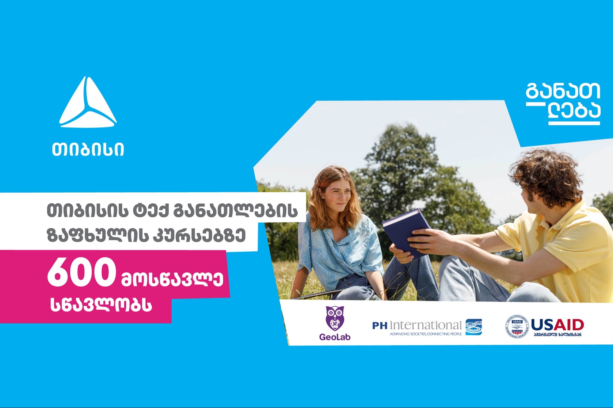 თიბისის განათლების პროექტი ხორციელდება ჯეოლაბის, უნილაბის, ექსპლორიუმის, USAID-ისა და PH International-ის პარტნიორობით. პროგრამა სრულად ფინანსდება თიბისის მიერ.