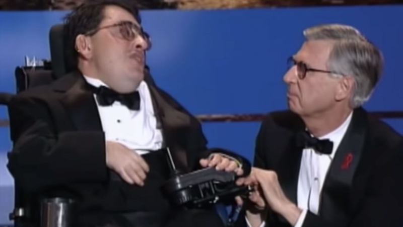 When Fred Rogers was inducted into the TV Hall of Fame in 1999, guess who surprised him at the podium? Jeff Erlanger. And he immediately interacted with Jeff just as he had many years before, comfortably kneeling beside Jeff’s wheelchair so he could look him in the eye as he described his gratitude for Mr. Roger’s work.
