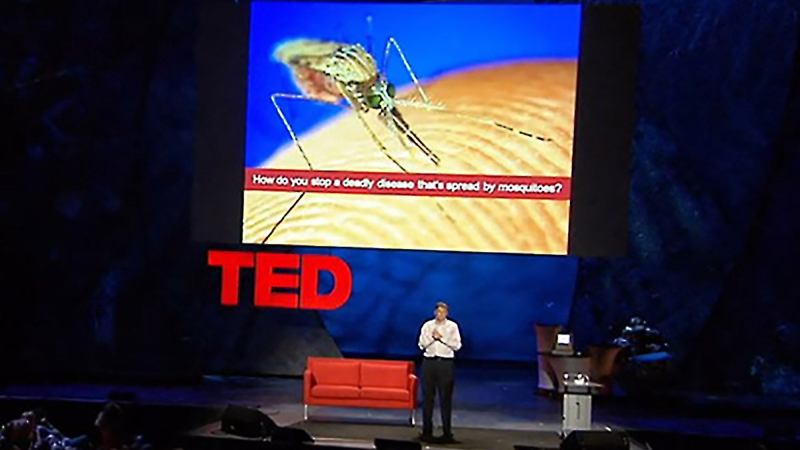 Release the mosquitoes! “Malaria is spread by mosquitoes,” Gates told the TED audience as he picked up a glass jar sitting on a table in front him. He opened the jar and said, “I brought some here. I’ll let them roam around. There is no reason only poor people should be infected.” The audience sat in stunned silence for a moment, then laughed, applauded and cheered. They weren’t happy about the topic, of course, but they knew that Gates had given them a novel way to consider the issue.