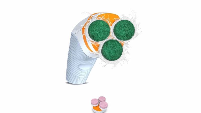 Skadu uses three opposite scrubbing heads to maximize the physics of cleaning. Blasting away at grime from all directions, Skadu makes cleaning faster and more efficient. Plus, it has an innovative attachment system that lets you utilize nine different brush heads for different jobs. It lasts for up to 120 minutes on a full charge.