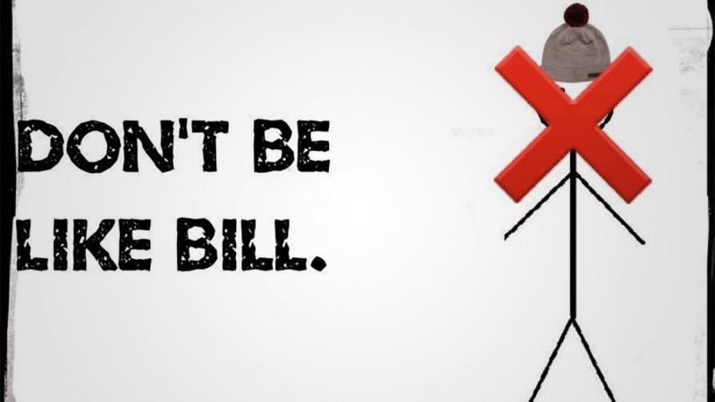 Unless Snowzilla knocked out your WiFi last weekend or you live under a rock, you probably know the Bill of which we speak. No, not your actual friend Bill. The fake stick-figure Bill. Yup, that one. The snarky jackass “Be Like Bill” Bill that wears a knitted beanie and stands next to dumb “poems” about your Facebook friends.