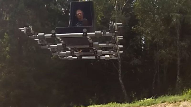 A Swedish engineer has created this wonky, flying contraption, made from eight gas-powered propellers, a small tube frame, an open seat and an R/C controller. Is it a manned drone aircraft? A multi-copter?